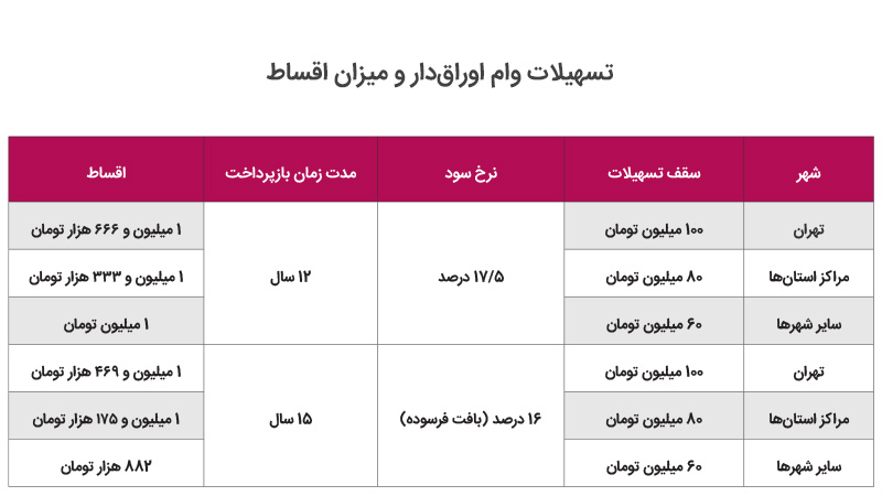 اقساط وام مسکن را میتوان به روش ساده یا پلکانی پرداخت کرد. بازپرداخت به روش های ساده و پلکانی وجود دارد. برای دریافت وام از طریق اوراق، محدودیت دفعات وجود ندارد.